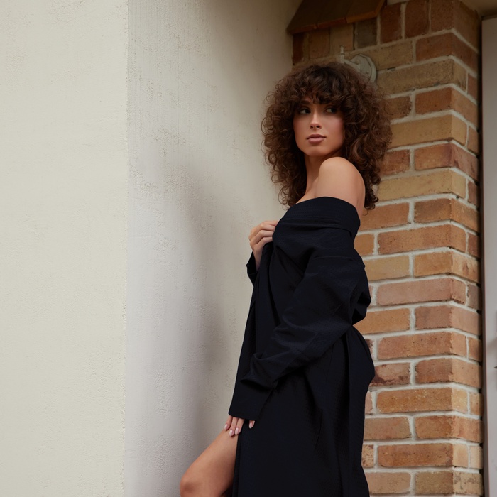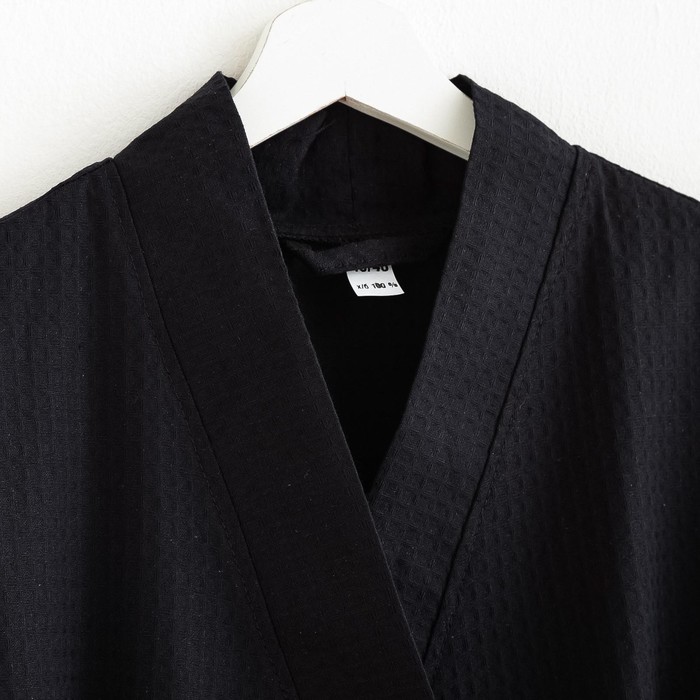Халат вафельный женский удлинённый Экономь и Я размер 50-52, цвет чёрный, 100% хлопок, 200г/м2 — Характеристики