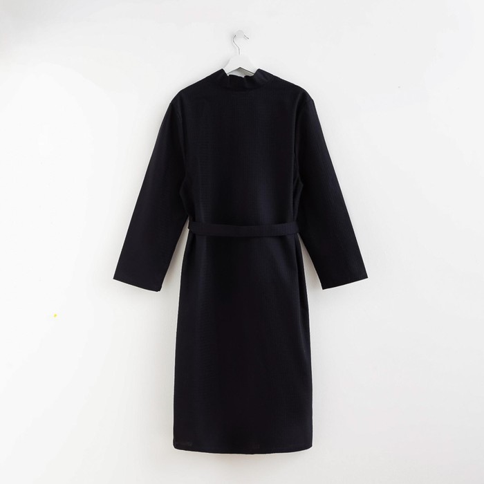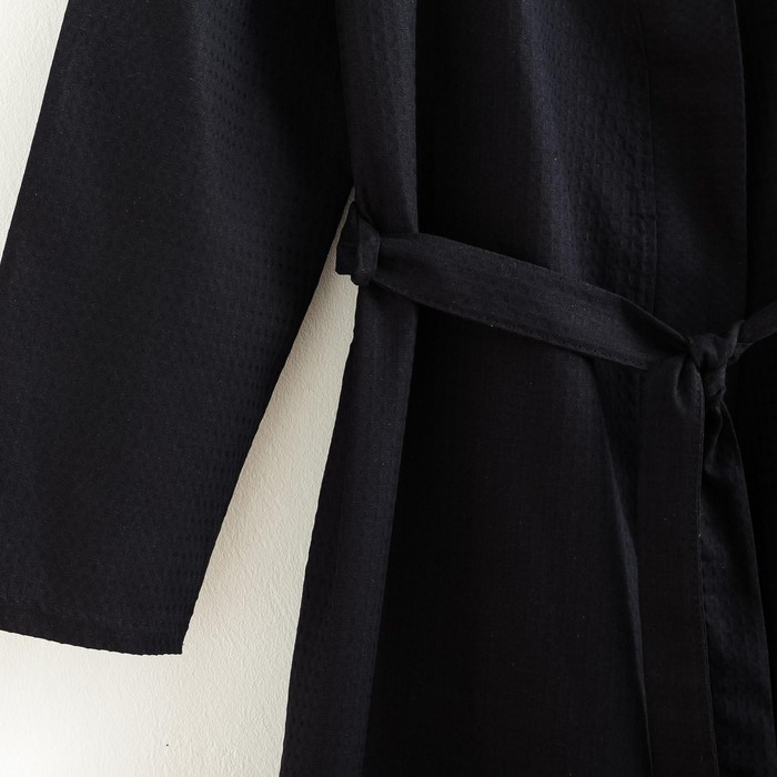 Халат вафельный женский удлинённый Экономь и Я размер 50-52, цвет чёрный, 100% хлопок, 200г/м2