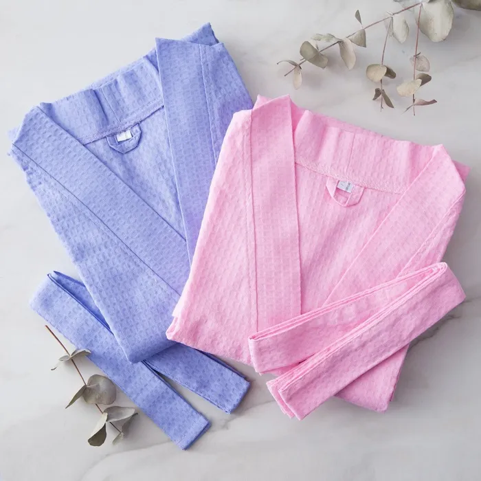 Халат вафельный женский «Экономь и Я» рукав 3/4, цвет розовый р. 42-44, хл 100%, 200 г/м²