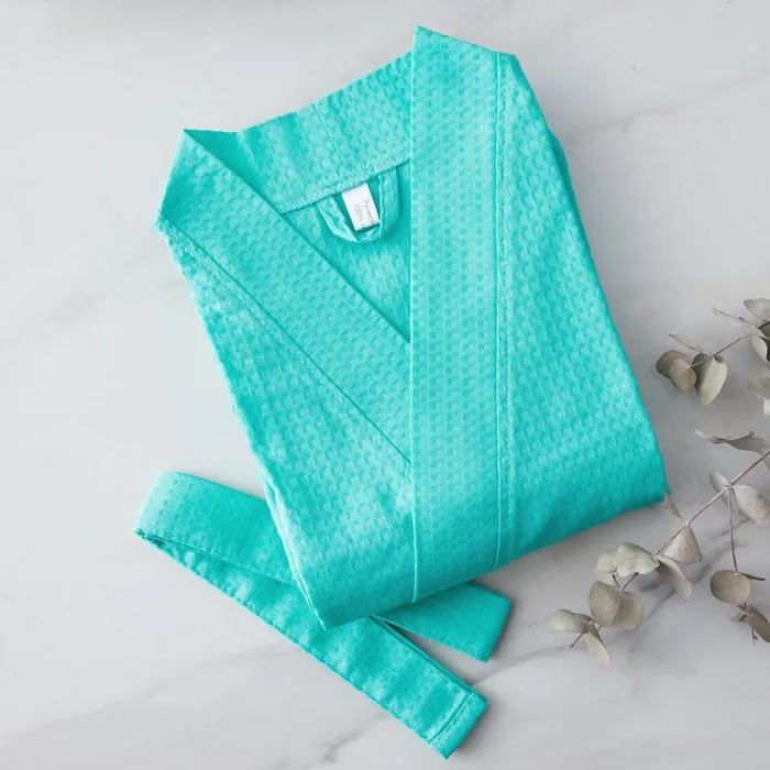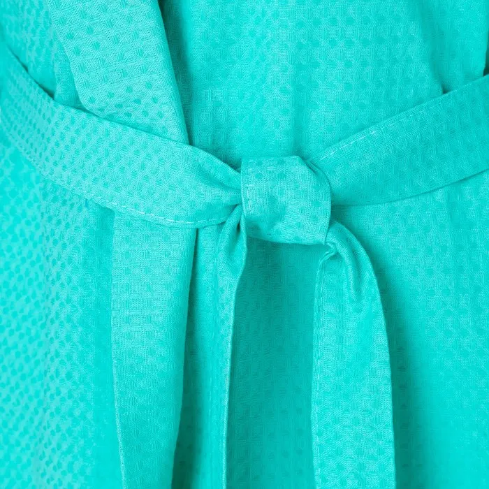 Халат вафельный женский Экономь и Я рукав 3/4, размер 42-44, бирюзовый, 100% хлопок, 200г/м2