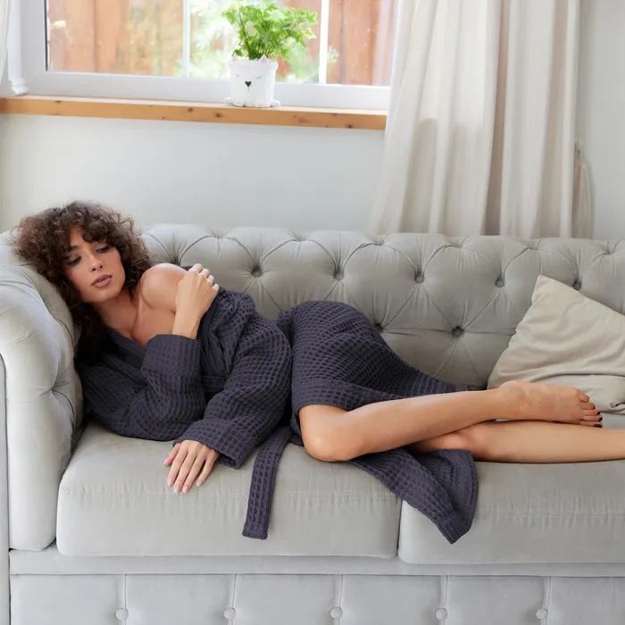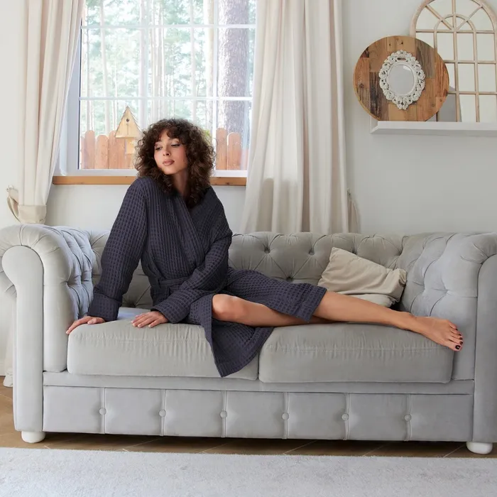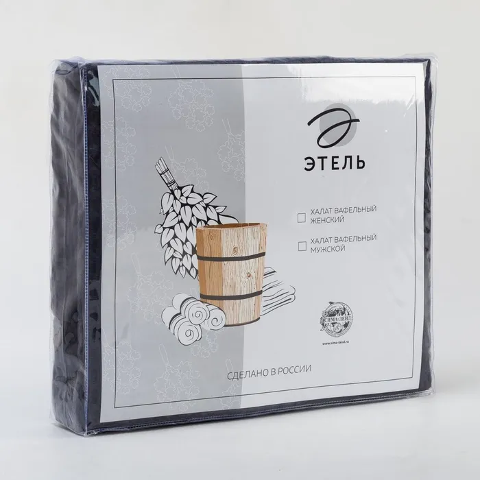 Халат вафельный женский удлинённый Этель "Boho" размер 42-44, цвет тёмно-серый, 100% хлопок, 290 г/м2 — Характеристики
