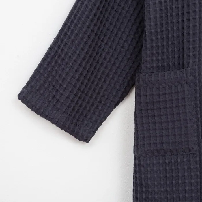 Халат вафельный женский удлинённый Этель "Boho" размер 42-44, цвет тёмно-серый, 100% хлопок, 290 г/м2