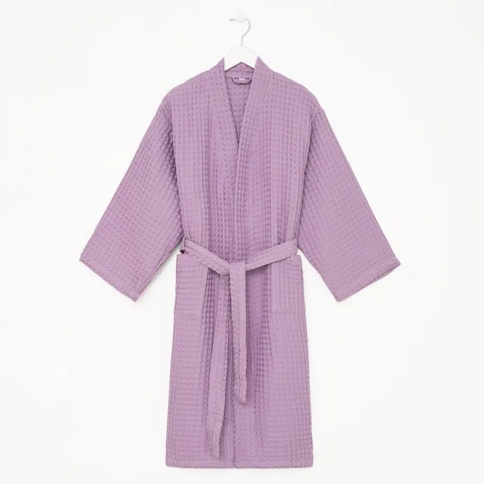 Халат вафельный женский удлинённый Этель "Boho" размер 50-52, цвет сиреневый, 100% хлопок, 290 г/м2
