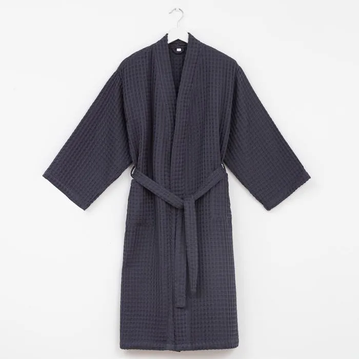 Халат вафельный женский удлинённый Этель "Boho" размер 54-56, цвет тёмно-серый, 100% хлопок, 290 г/м2