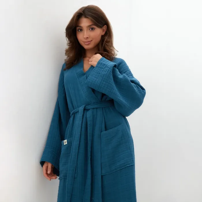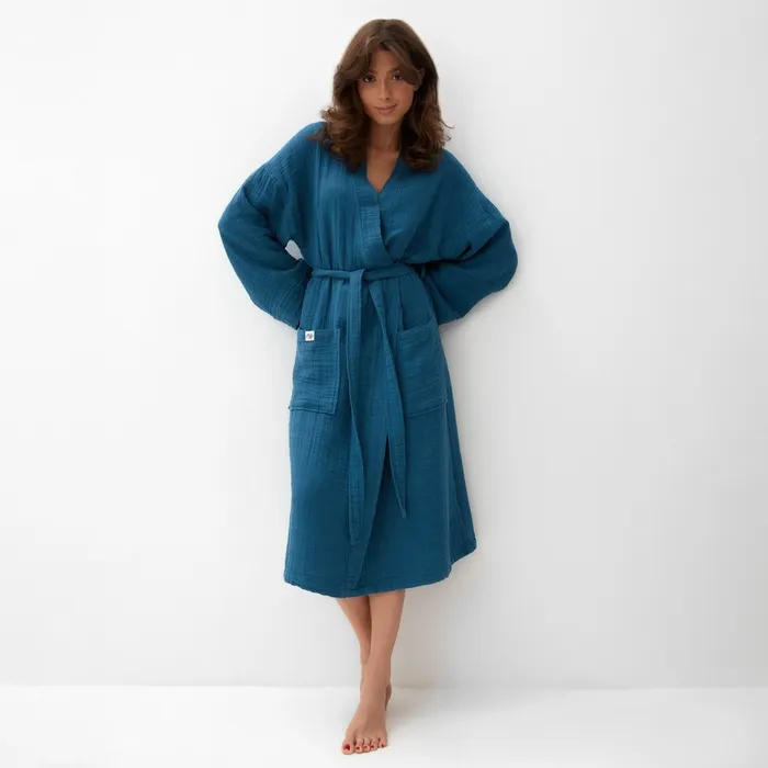 Халат жен.муслиновый LoveLife размер 42-44, цвет синий, 100% хл, 4-сл, 235гр/м2 — Характеристики