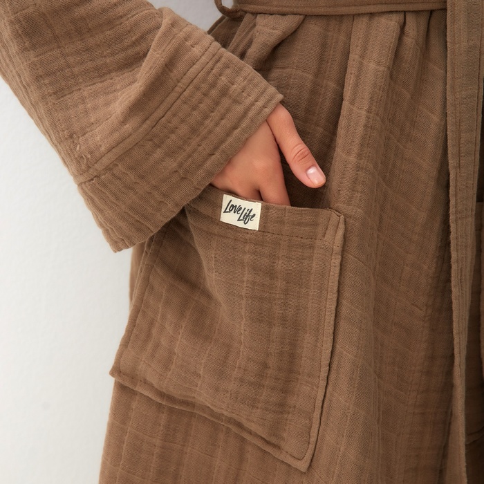 Халат жен.муслиновый LoveLife размер 46-48, цвет мокко, 100% хл, 4-сл, 235гр/м2