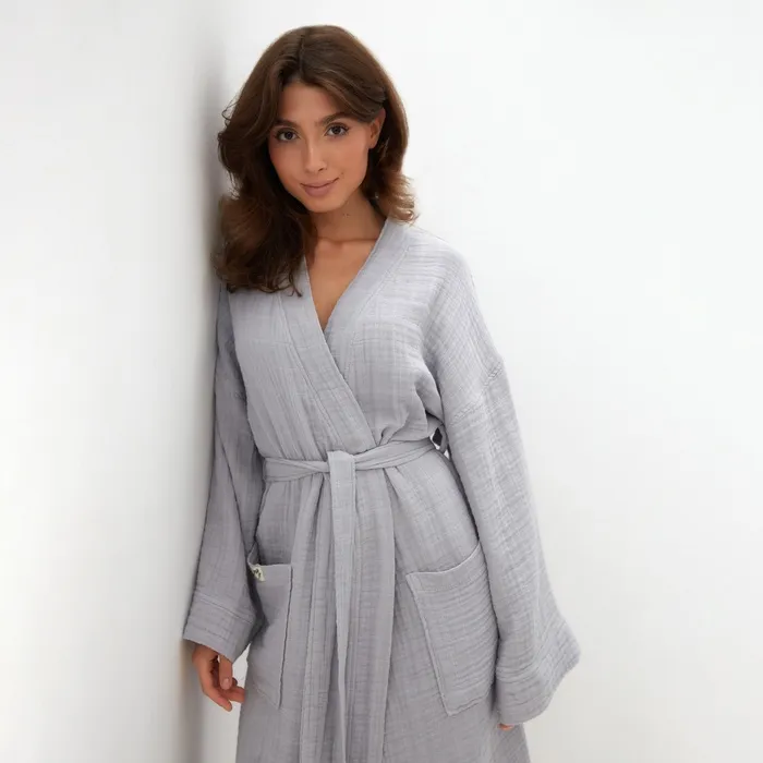 Халат жен.муслиновый LoveLife размер 46-48, цвет серый, 100% хл, 4-сл, 235гр/м2 — Характеристики