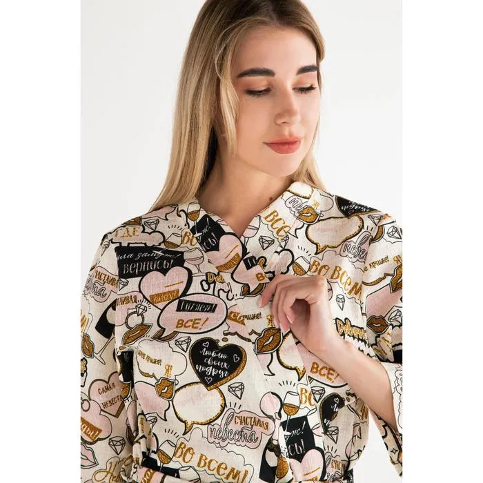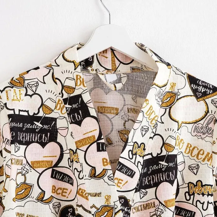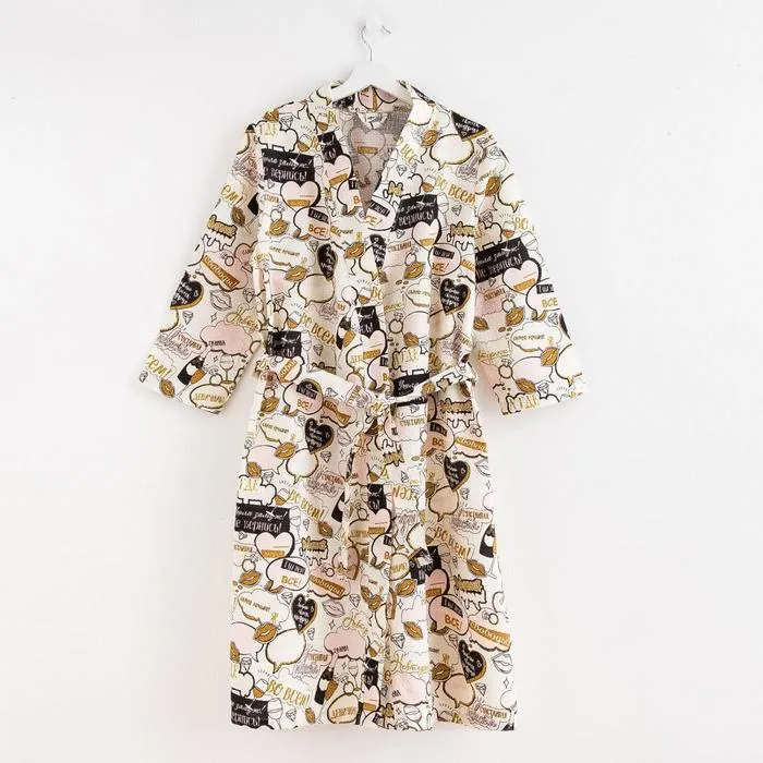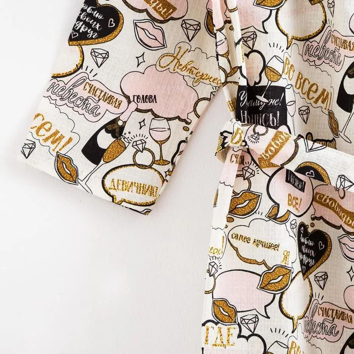 Халат женский Этель "Девичник" рукав 3/4, размер 42-44, вафля 200г/м2, 100% хлопок — Характеристики