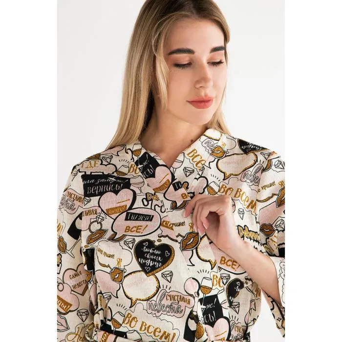 Халат женский Этель "Девичник" рукав 3/4, размер 46-48, вафля 200г/м2, 100% хлопок — Характеристики