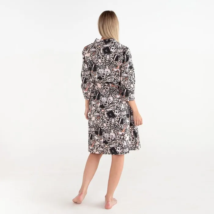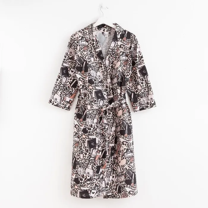 Халат женский Этель "Леопард" рукав 3/4, размер 46-48, вафля 200г/м2, 100% хлопок — Характеристики