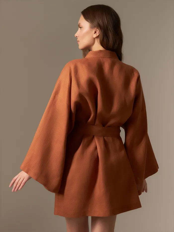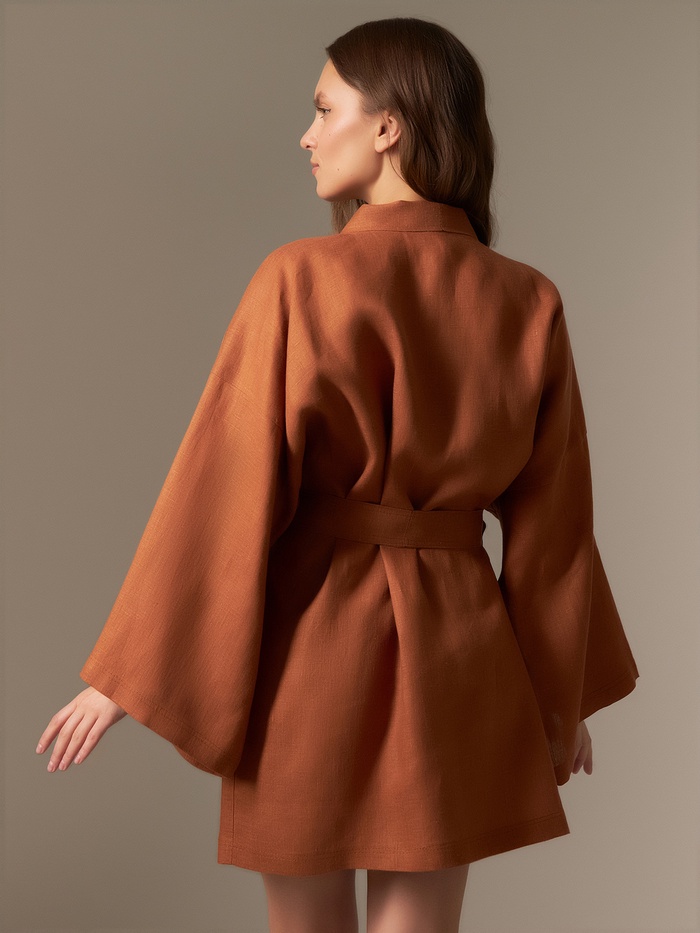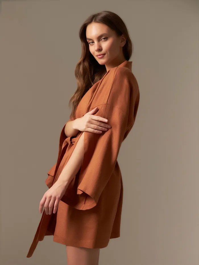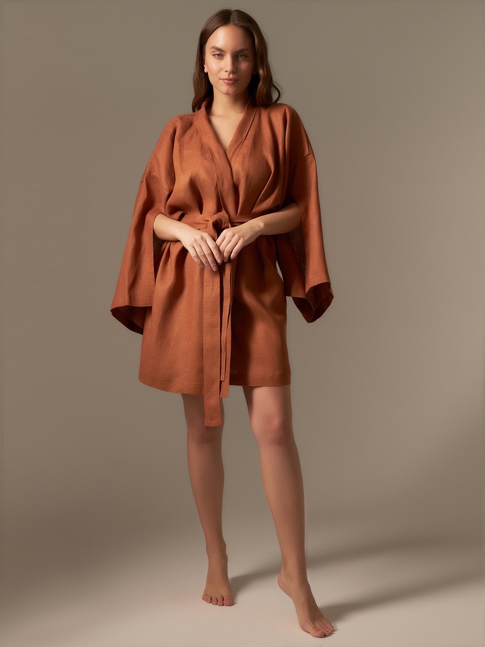 Халат женский короткий SL HOME "Brown", размер 44-52, 100% лён, 150г/м2 — Характеристики