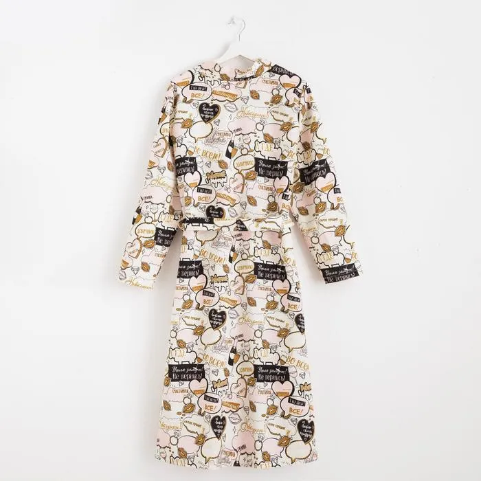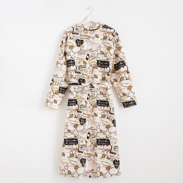 Халат вафельный женский «Экономь и Я» рукав 3/4, цвет розовый р. 46-48, хл 100%, 200 г/м²