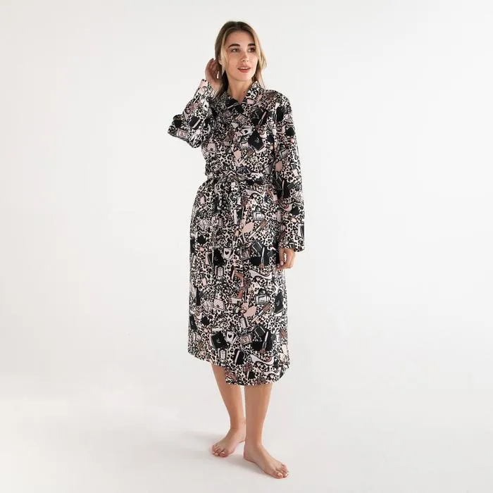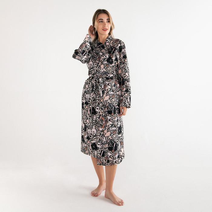 Халат женский удлинённый Этель "Леопард", размер 54-56, вафля 200г/м2, хлопок
