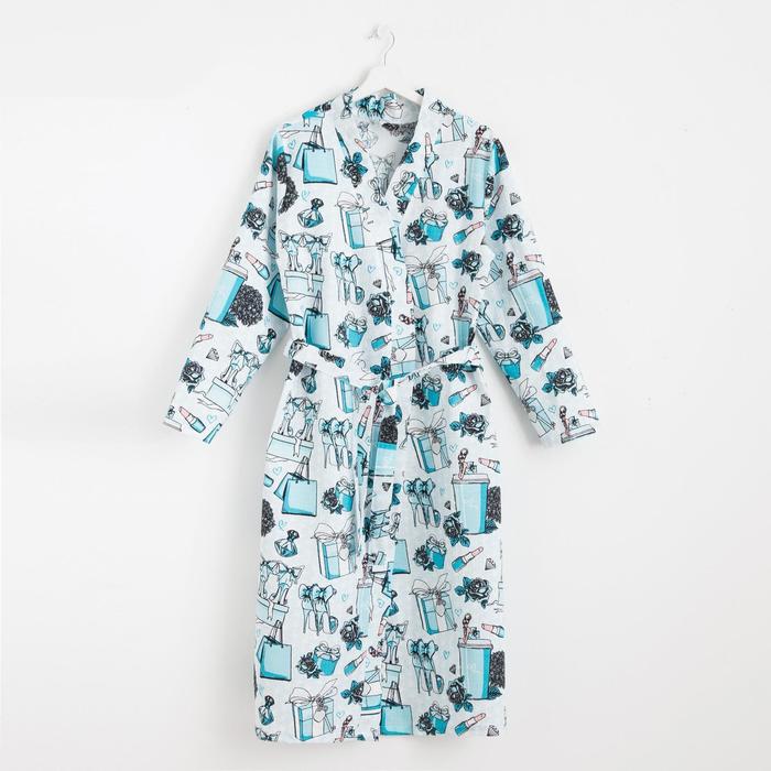 Халат женский удлинённый Этель "Mint mood", размер 50-52, вафля 200г/м2, хлопок — Характеристики