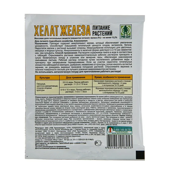 Хелат железа "Ортон", пак, 10 г — Характеристики