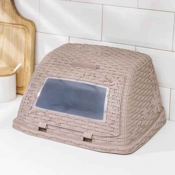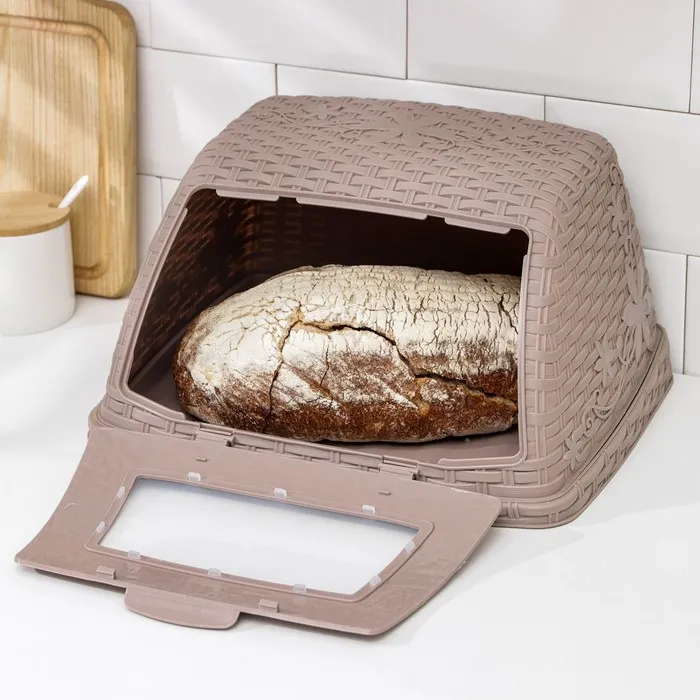 Хлебница с крышкой Альтернатива «Плетёнка», 26×33×19 см, пластик, светло-коричневая — Характеристики