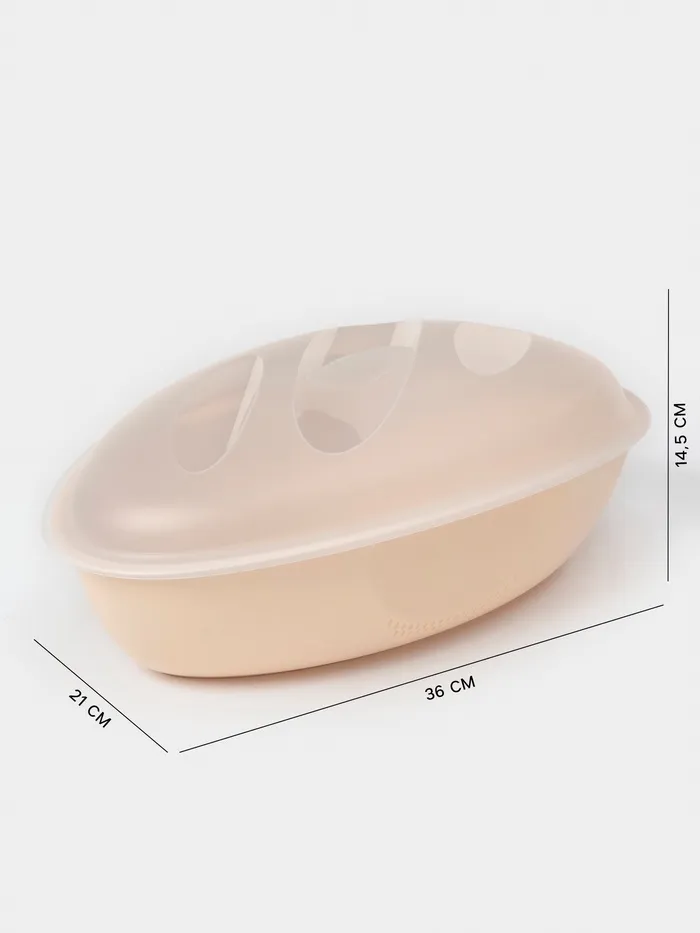 Специальные отверстия на корпусе способствуют циркуляции воздуха и позволяют хлебу «дышать». Забудьте о плесени! Хлебница с крышкой phibo «Уют», 36×21×14.5 см, пластик, МИКС из пищевого пластика позаботится о благоприятном микроклимате.