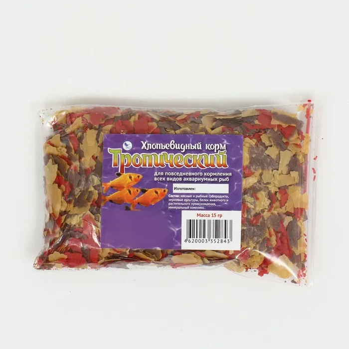 Тропический подходит для кормления любых видов рыб, обитающих в толще воды.