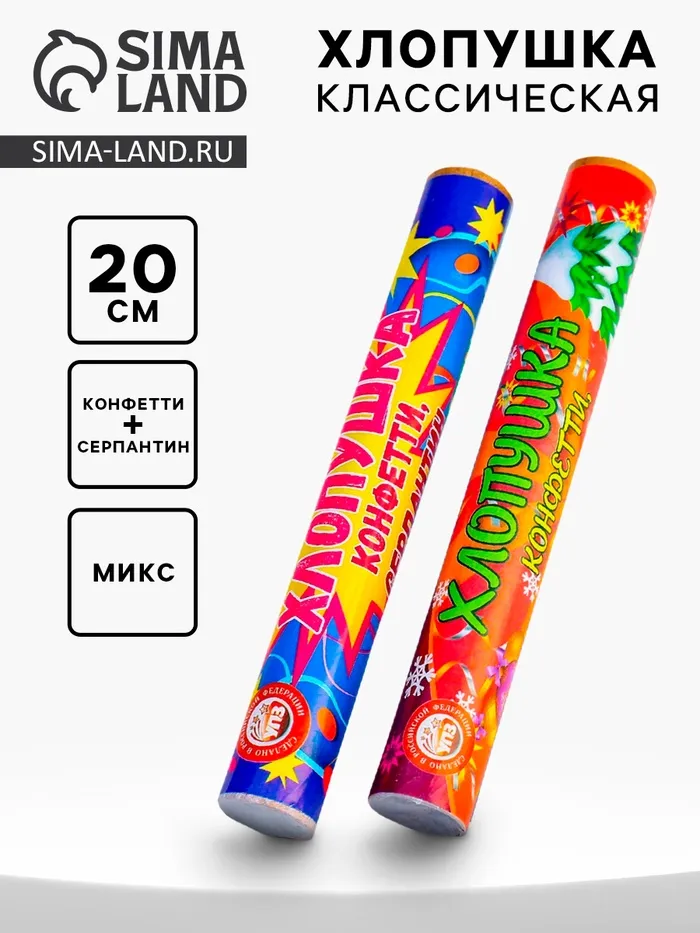 Хлопушка классическая с конфетти и серпантином, 20 см — Характеристики