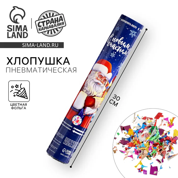 Хлопушка пневматическая «Дед Мороз», 30 см — Характеристики