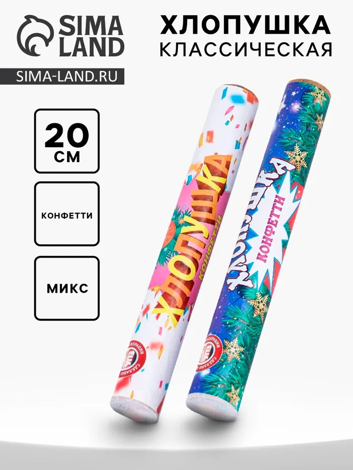 Хлопушка пневматическая «Классическая» с конфетти, 20 см — Характеристики