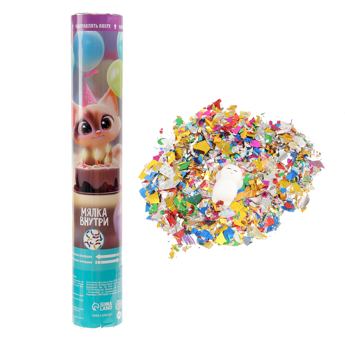 Хлопушка пневматическая «Котик» 30 см серпантин, мялка — Характеристики