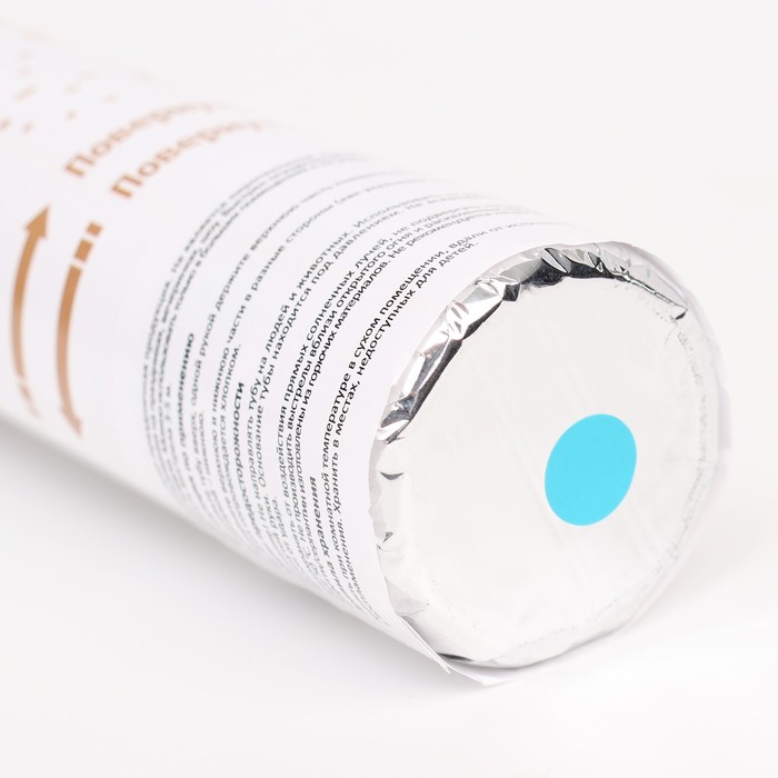 Для активации хлопушки необходимо повернуть нижнюю часть по часовой стрелке. Важно держать устройство вертикально, направив его верхнюю часть вверх. После активации из хлопушки вылетит облако цветного дыма и конфетти.