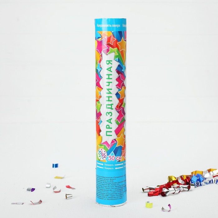 Хлопушка пневматическая «Праздничная», фольга-серпантин, 30 см — Характеристики