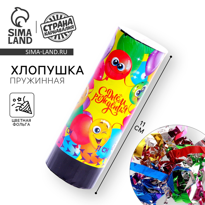 Хлопушка пневматическая «С днём рождения», 20 см — Характеристики