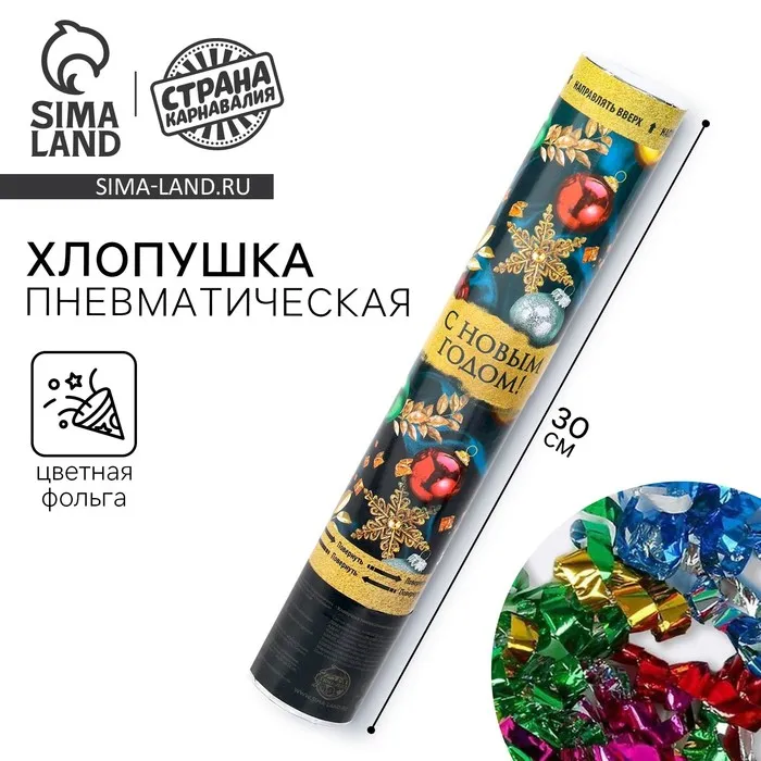Хлопушка пневматическая «С Новым Годом!», игрушки, 30 см. — Характеристики