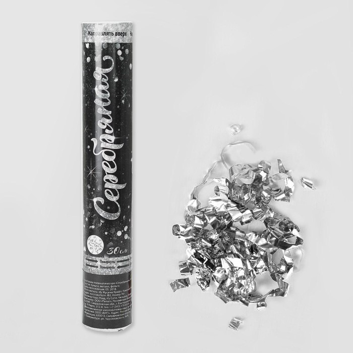 Хлопушка пневматическая «Серебряная», фольга, серпантин, 30 см — Характеристики