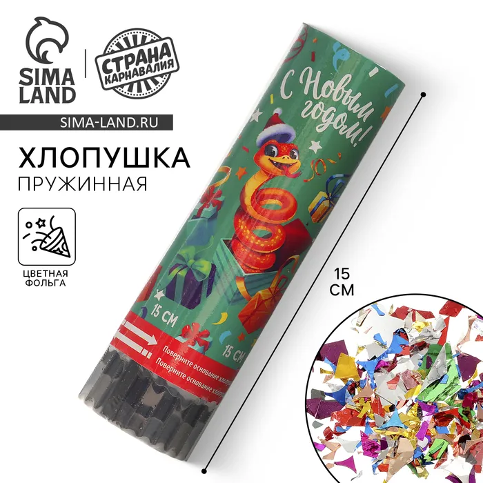 Хлопушка пружинная поворотная «С Новым Годом» змейка 15 см — Характеристики