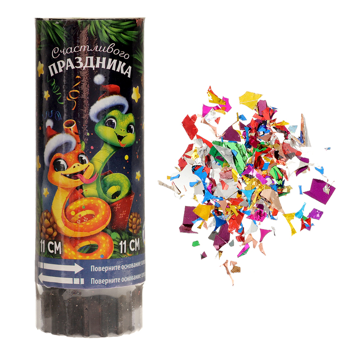 Хлопушка пружинная поворотная «Счастливого праздника» 11 см — Характеристики