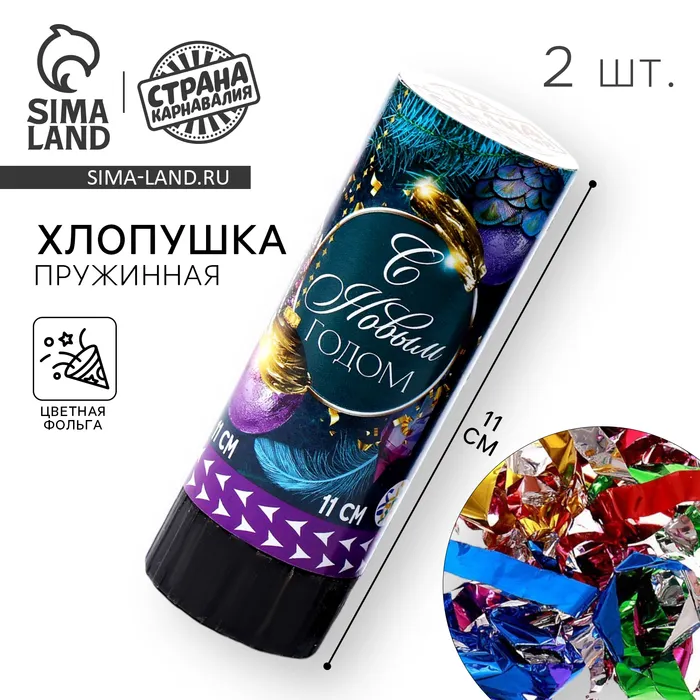 Хлопушка пружинная «С новым годом», 2 шт., 11 см — Характеристики