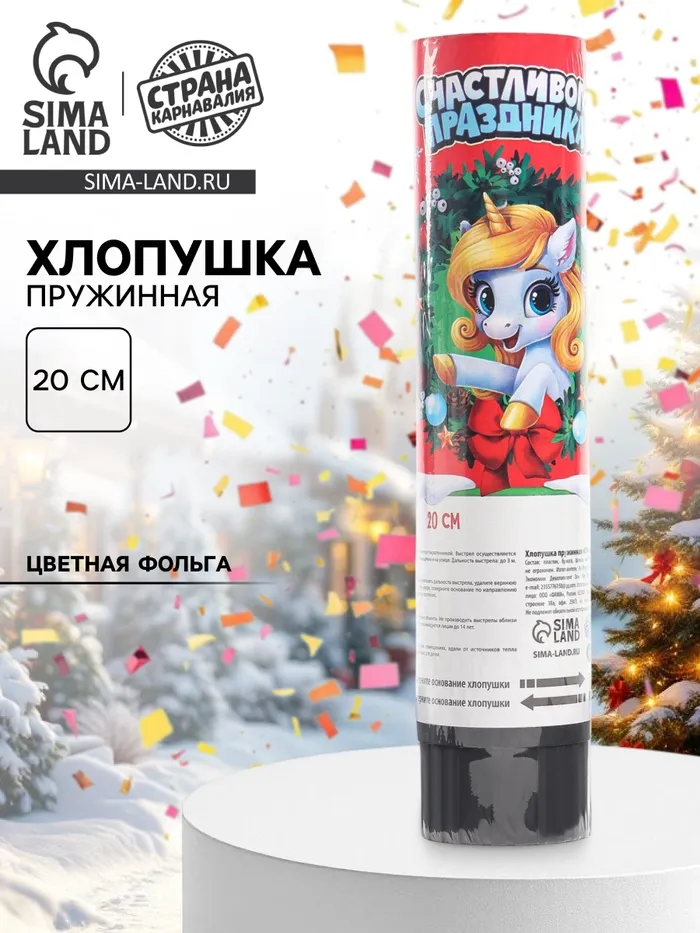 Хлопушка пружинная «С новым годом», единорог, 20 см — Характеристики