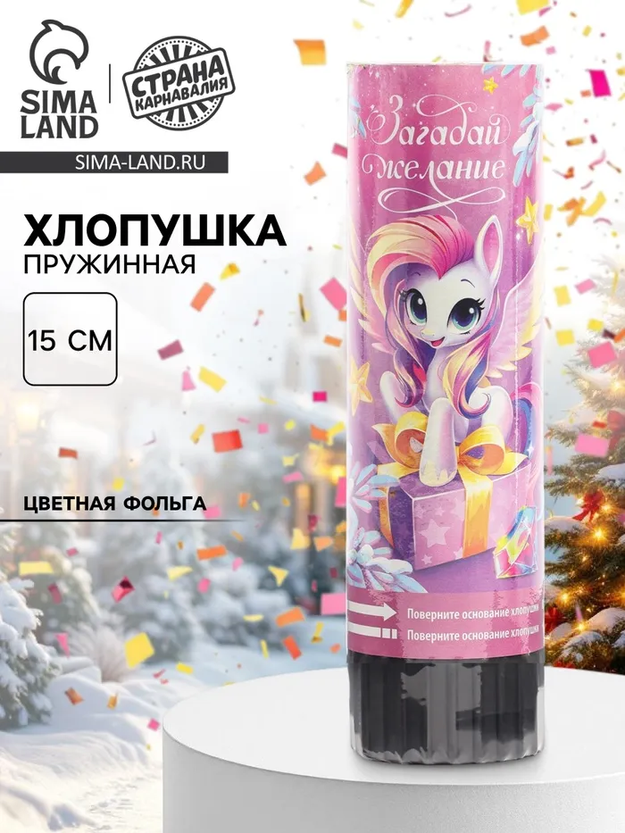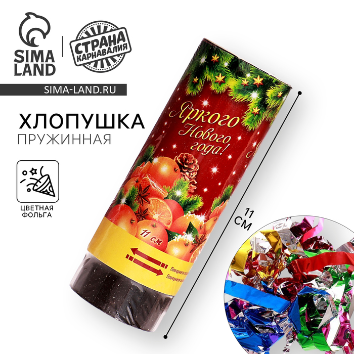 Хлопушка пружинная «С новым годом», волшебство, 15 см — Характеристики