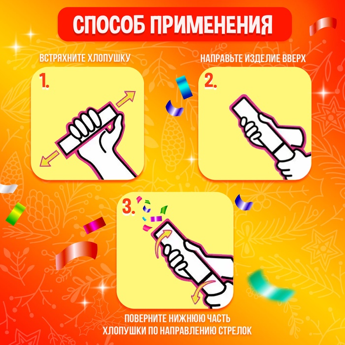 Хлопушка отлично подойдёт для Новогодних вечеринок. Она также может стать частью декора или выступить в качестве необычного сюрприза для гостей.