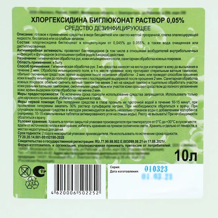 Наружно. Местно. Применяется в виде орошений и аппликаций - 5-10 мл препарата наносят на пораженную поверхность кожи или слизистых оболочек с экспозицией 1-3 мин 2-3 раза в сутки (на тампоне или путем орошения).