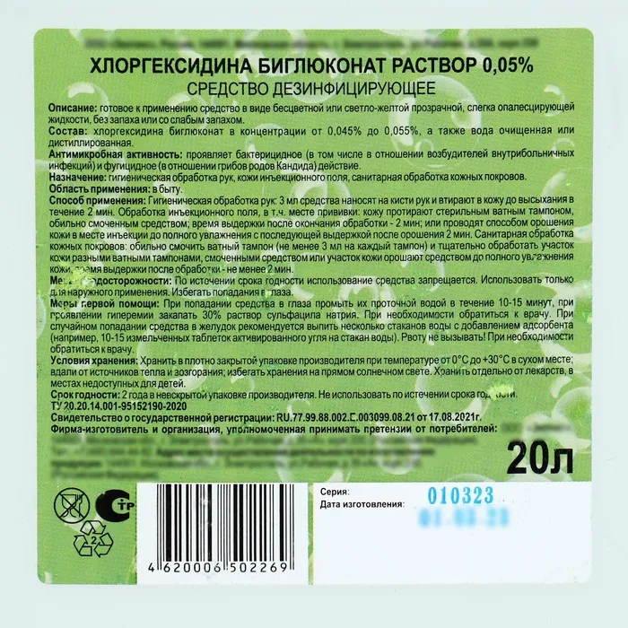 0,05 % водный раствор хлоргексидина применяется в виде полоскания 2-3 раза в сутки.
