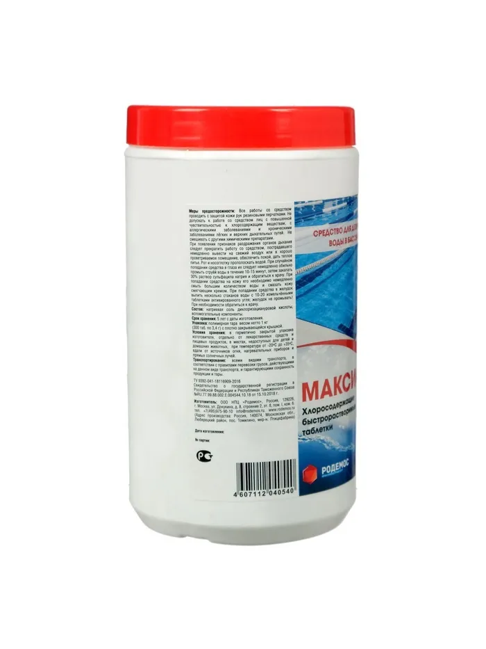 Хлорная таблетка "МАКСИСАН" Быстрорастворимая Туба, 1 кг — Характеристики