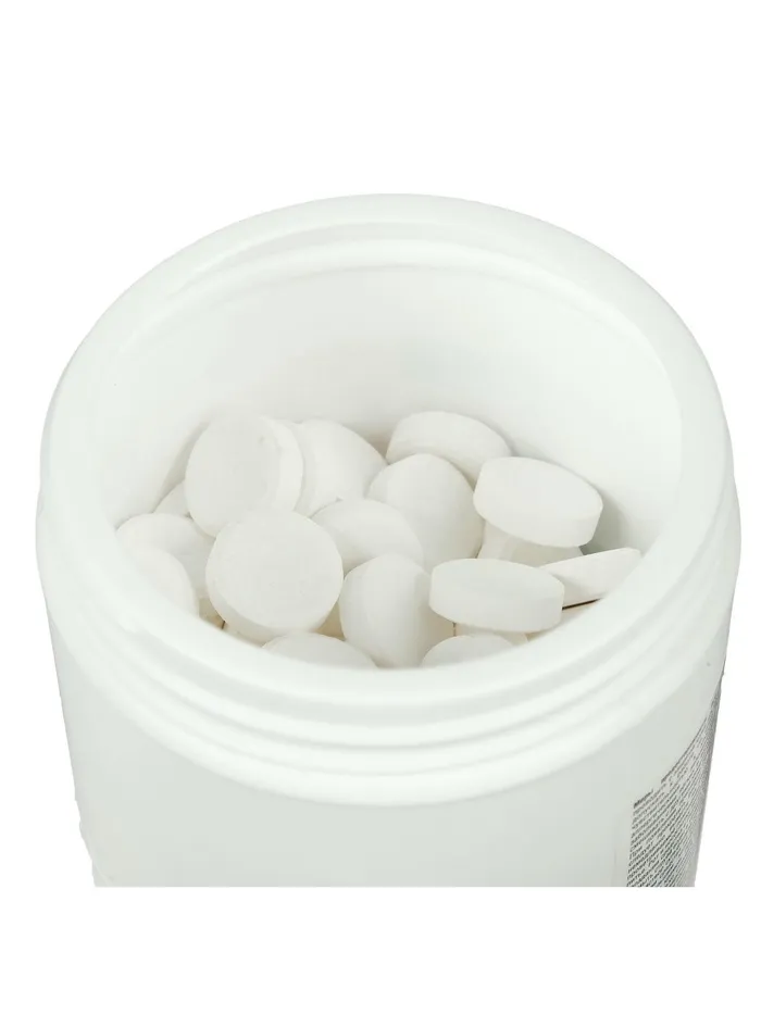 Описание: дезинфицирующее средство, представляет собой хлорсодержащие быстрорастворимые таблетки.