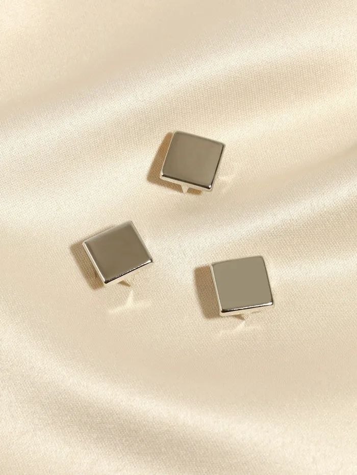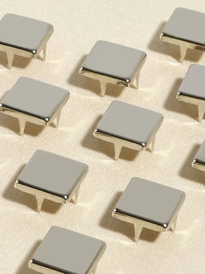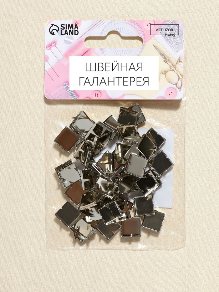 Стильные акценты для украшений и аксессуаров!Декоративные квадратные штифты 10×10 мм (50 шт.) — металлические элементы для создания бижутерии, скрапбукинга и декора. Серебристые детали с четырьмя креплениями подходят для украшения одежды, обуви, ремней, сумок и других изделий. Они идеально подходит для кожаных аксессуаров.
