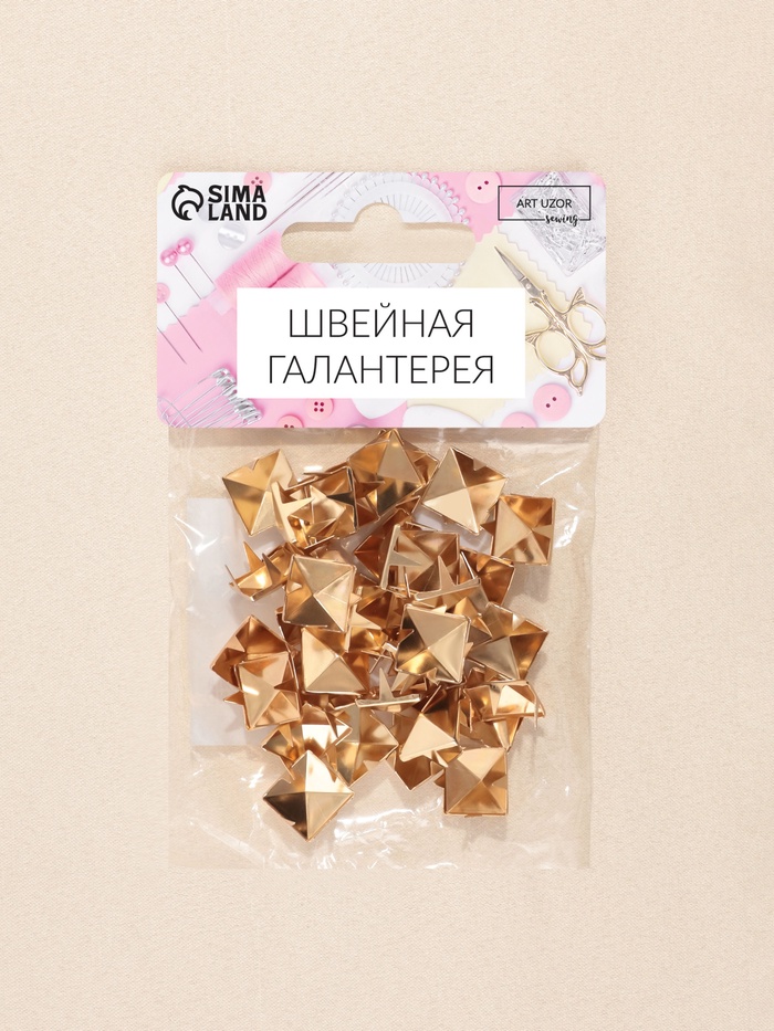Хольнитен «Пирамида», 11 × 11 мм, 4 крепления, 50 шт, цвет золотой — Характеристики