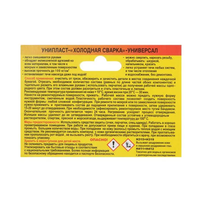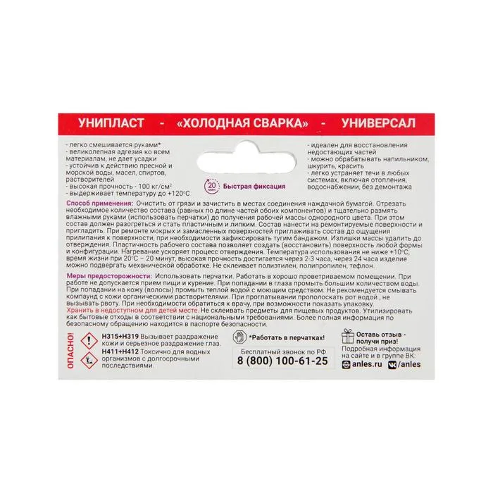 Холодная сварка «АНЛЕС» УНИПЛАСТ, универсальная, красная — Характеристики