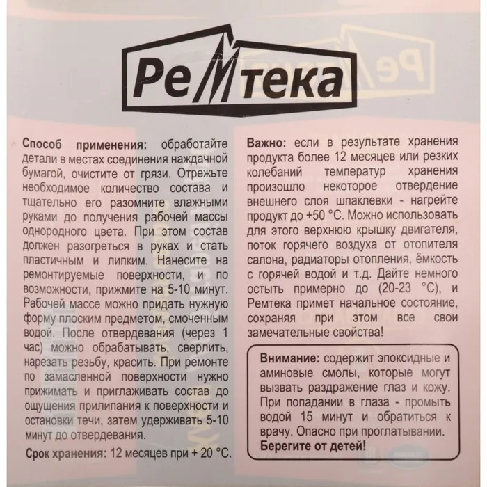 Холодная сварка Ремтека для батарей и труб, 45 г — Характеристики