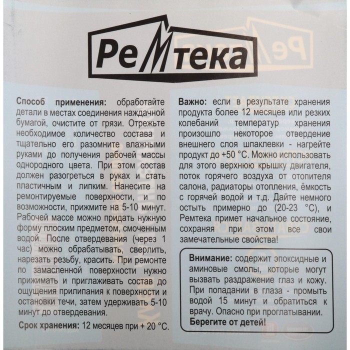 Холодная сварка Ремтека для сантехники, 45 г — Характеристики
