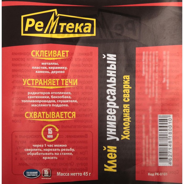 Холодная сварка Ремтека универсальная, 45 г — Характеристики