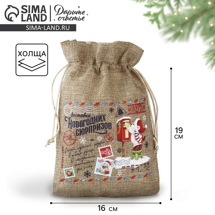 Холщовый мешочек для украшений, подарков и трав, текстиль «Эко», голубой, 15×21 см — Характеристики