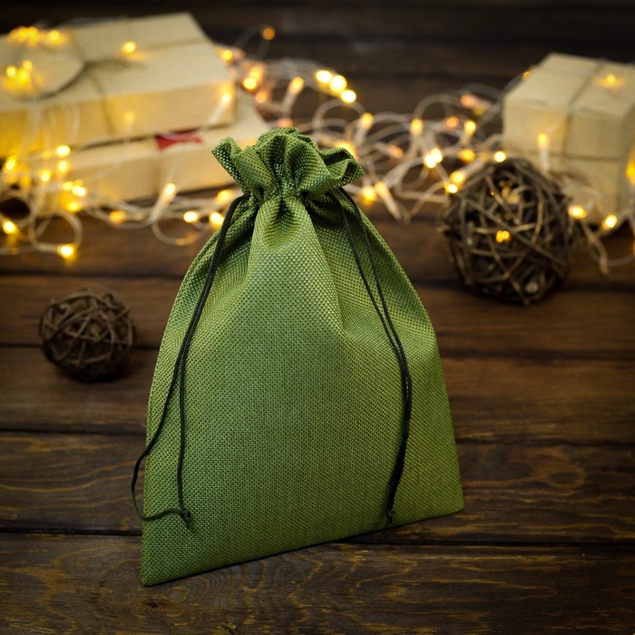 Холщовый мешочек для украшений, подарков и трав, текстиль «Эко», зелёный, 20×28 см — Характеристики