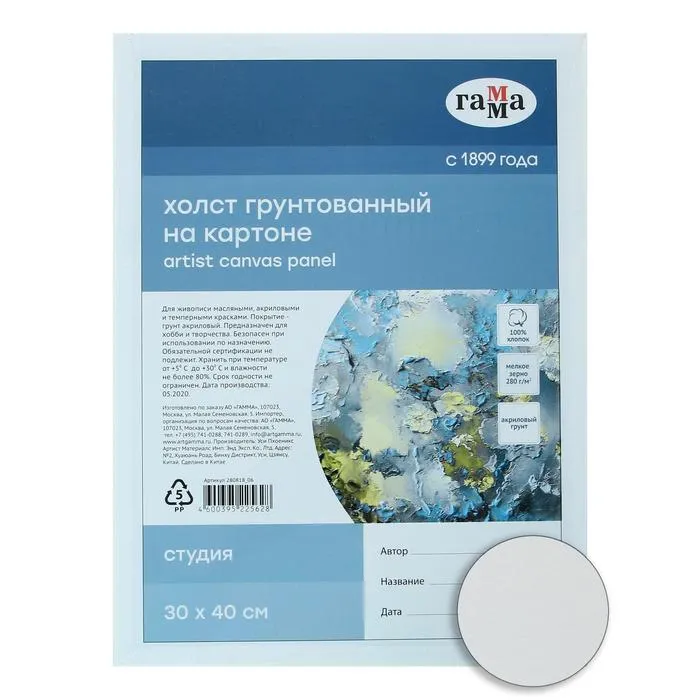 Грунтованный холст на картоне используется для работы масляными, темперными и акриловыми красками. Предназначен как для начинающих художников, так и учеников и студентов художественных школ.